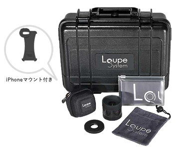このルーペシステムは、防水性と耐熱性を兼ね備えた衝撃にも強いABS樹脂製のトラベルケースにセットされています。ケース内は、ルーペをはじめ、交換用 シリコンラバー製トップカバー、 持ち運びに便利で安全なハード シェルキャリーケース、ホコリや キズから守るマイクロファイバー キャリーポーチ、レンズの汚れを 拭き取るマイクロファイバークリーニングクロス、そしてABS樹旨製のiPhone 5S専用カバーが含まれています。時計だけでなく、ジュエリーやミニュチュア、草花などの撮影にも最適なツールとしてお薦めいたします。